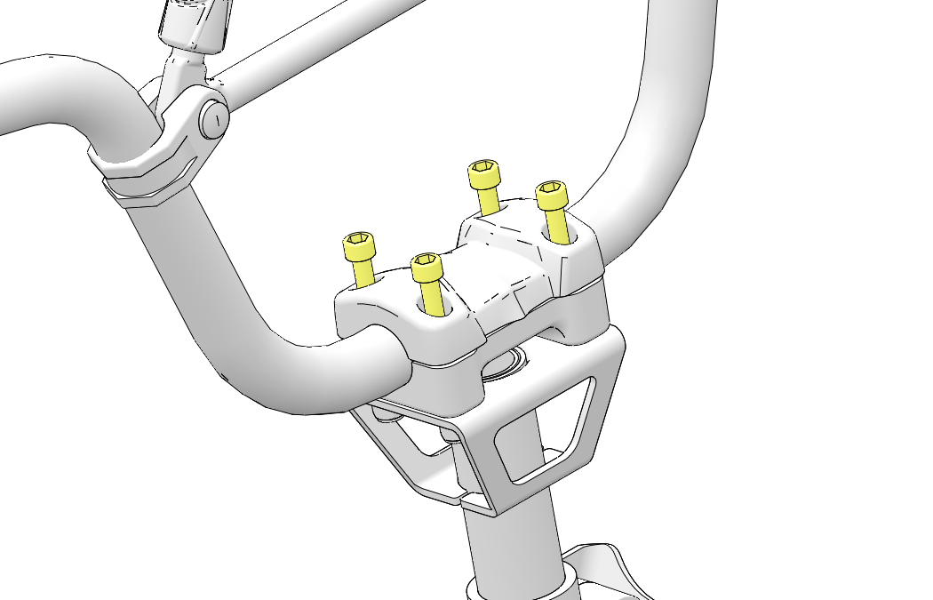 Securing the handlebar clamp bolts with an Allen® wrench, loosen each of the four nuts.
