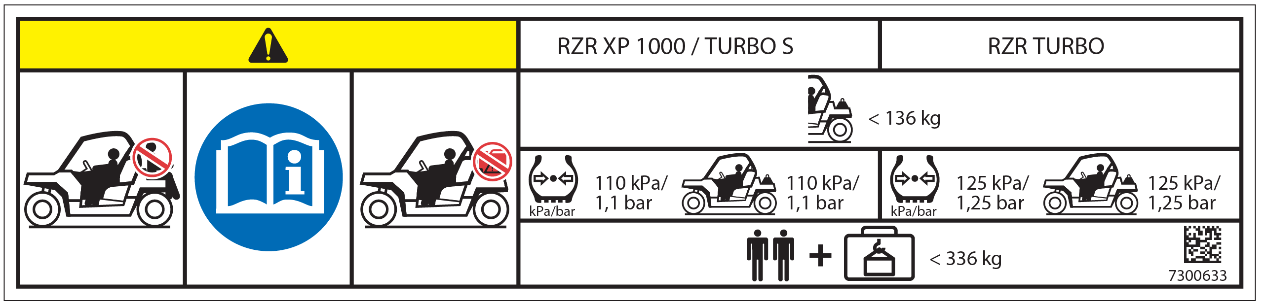 Kuormaa/matkustajia/rengaspainetta koskeva varoitus (7300633)