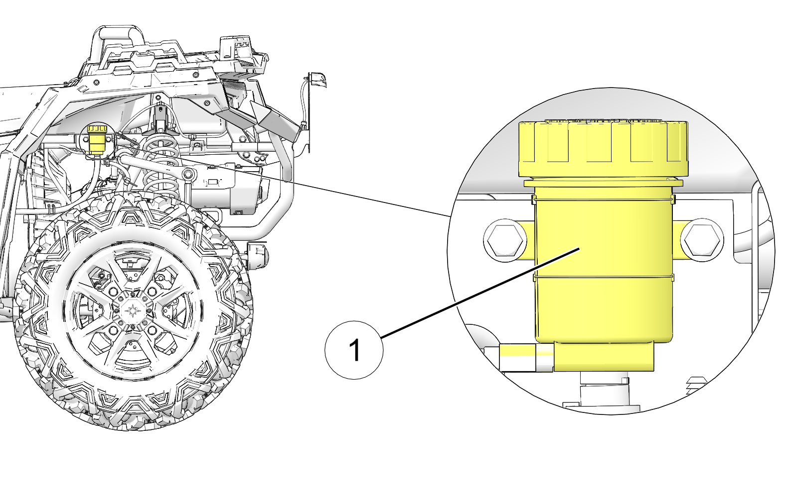 Check the brake fluid level frequently for the auxiliary brake system. The reservoir 1 is located under the left rear fender.