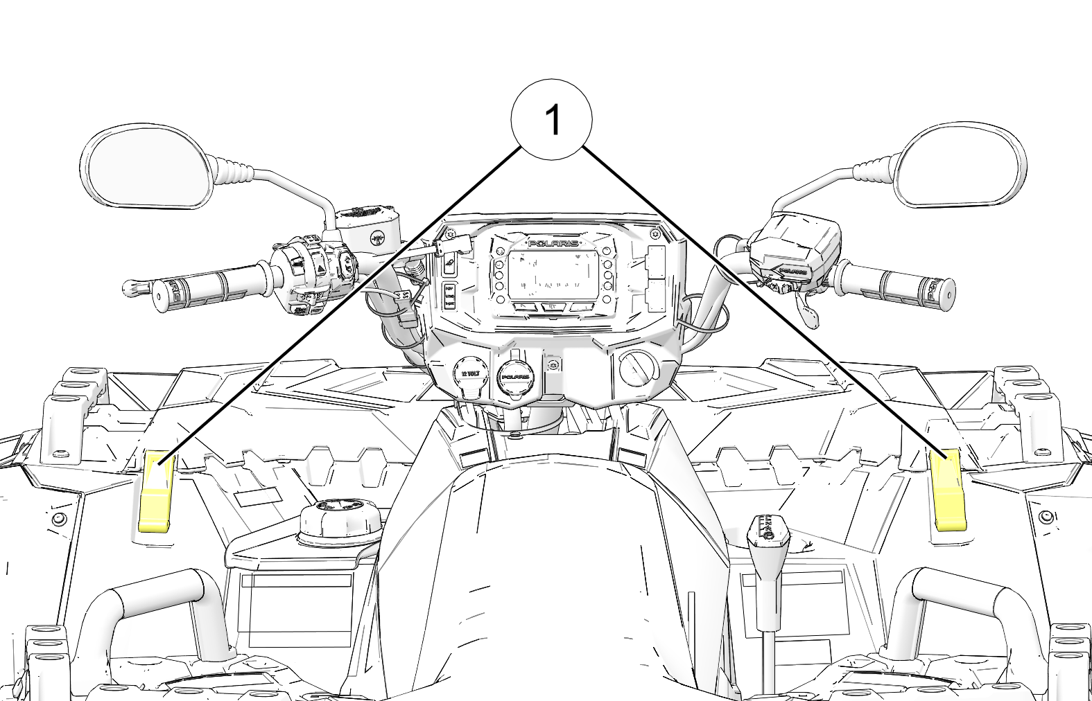 If your model is equipped with a front storage compartment, unlock the latches 1 on each side of the front rack to access the storage compartment.