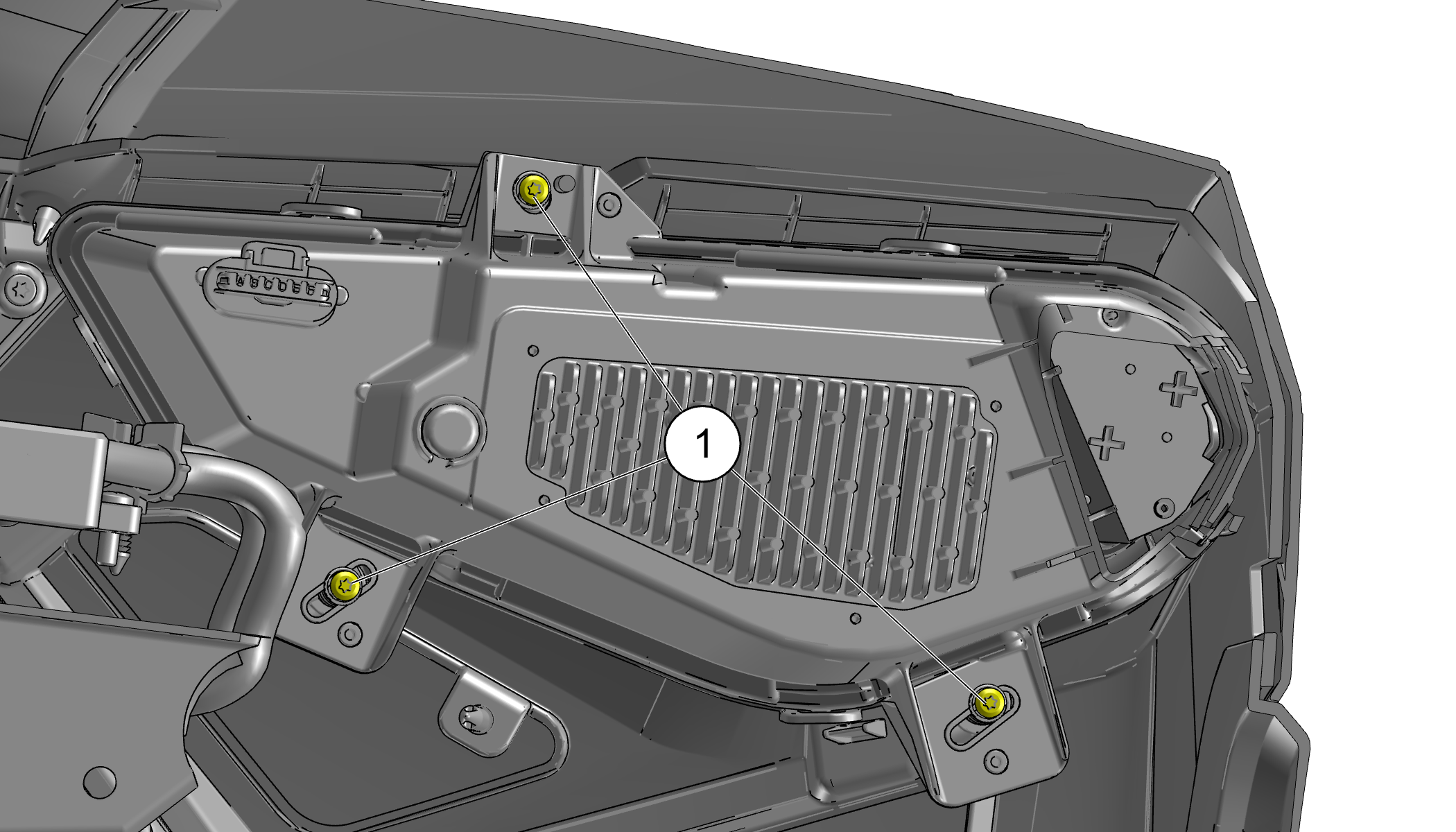 If a headlight needs adjustment, locate the three adjustment screws 1 at the back of each headlight (one on top, two on the bottom).