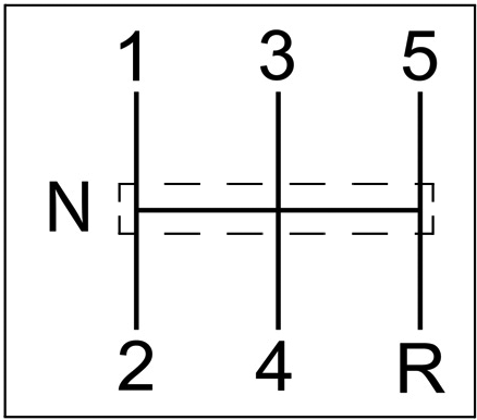 The SLINGSHOT vehicle is equipped with a 5-speed transmission. Neutral is located between gears. When the shift lever is in neutral, it should move freely from left to right.