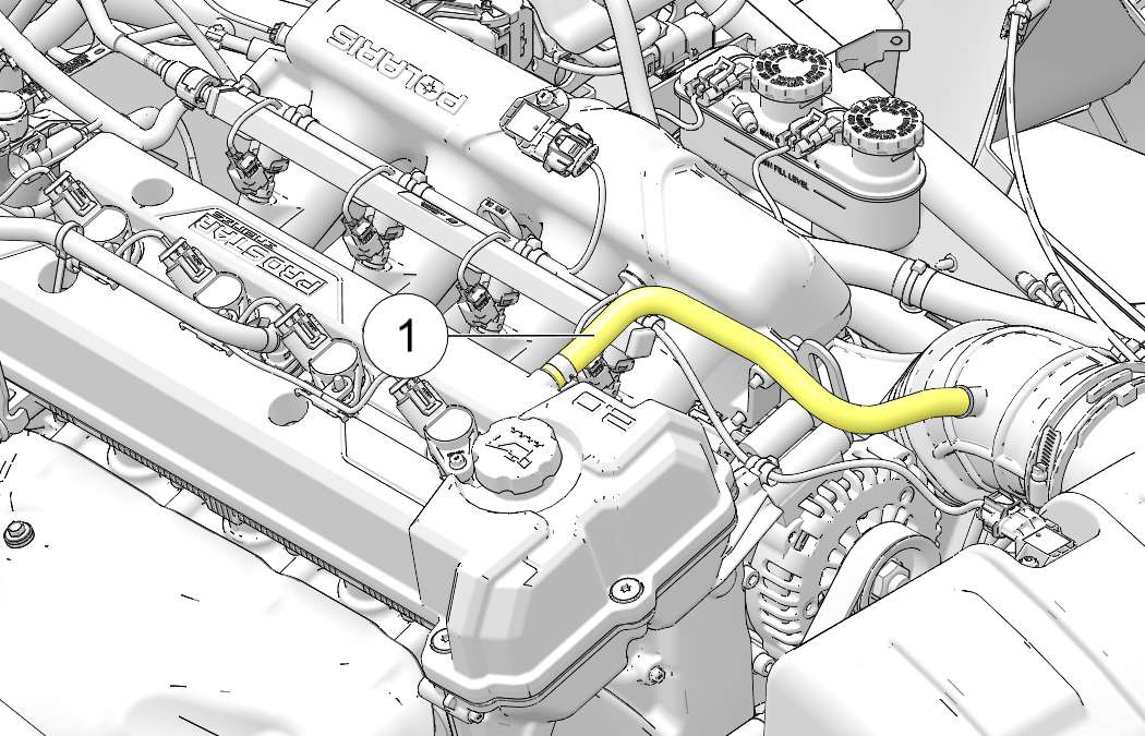 Inspect the entire length of both crankcase breather hoses for cracks, kinks, wear or other damage. Make sure clamps are in place and secure.