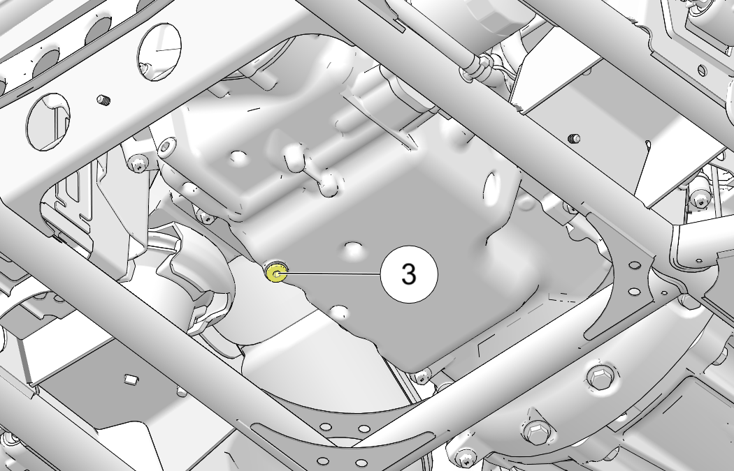 Clean the area around the drain plug 3 at the bottom of the crankcase.