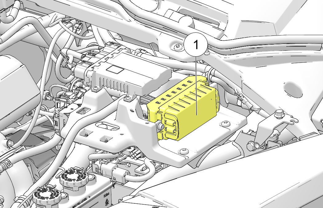 The primary fuse box 1 is located near the brake fluid reservoir. The six main system fuses are located in the battery compartment (seven for Canadian models).