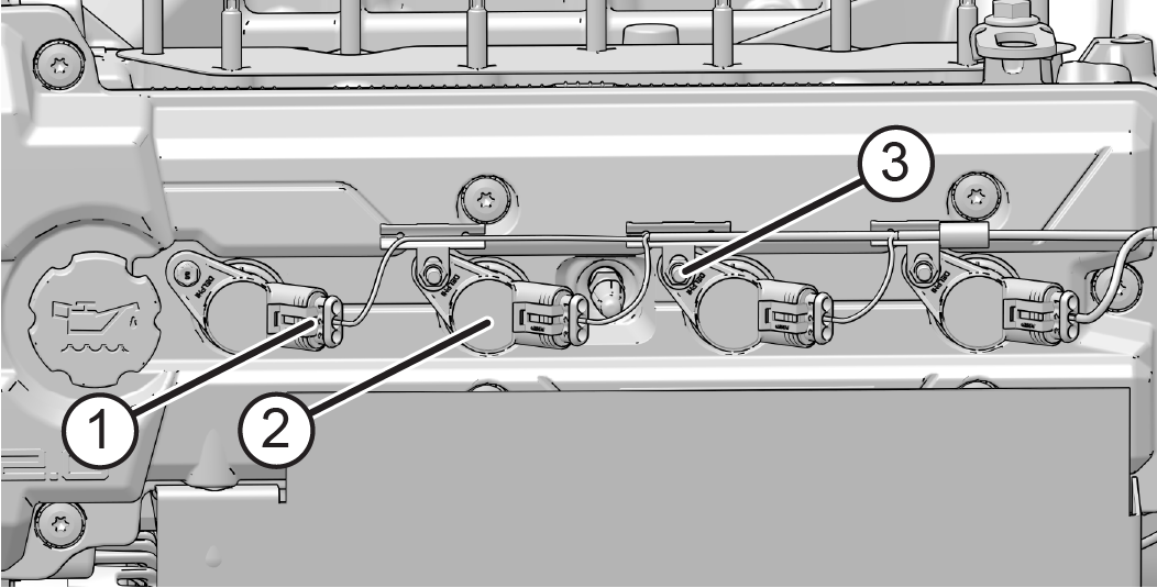 NOTICEThe spark plugs must still be installed before using compressed air in this area. -