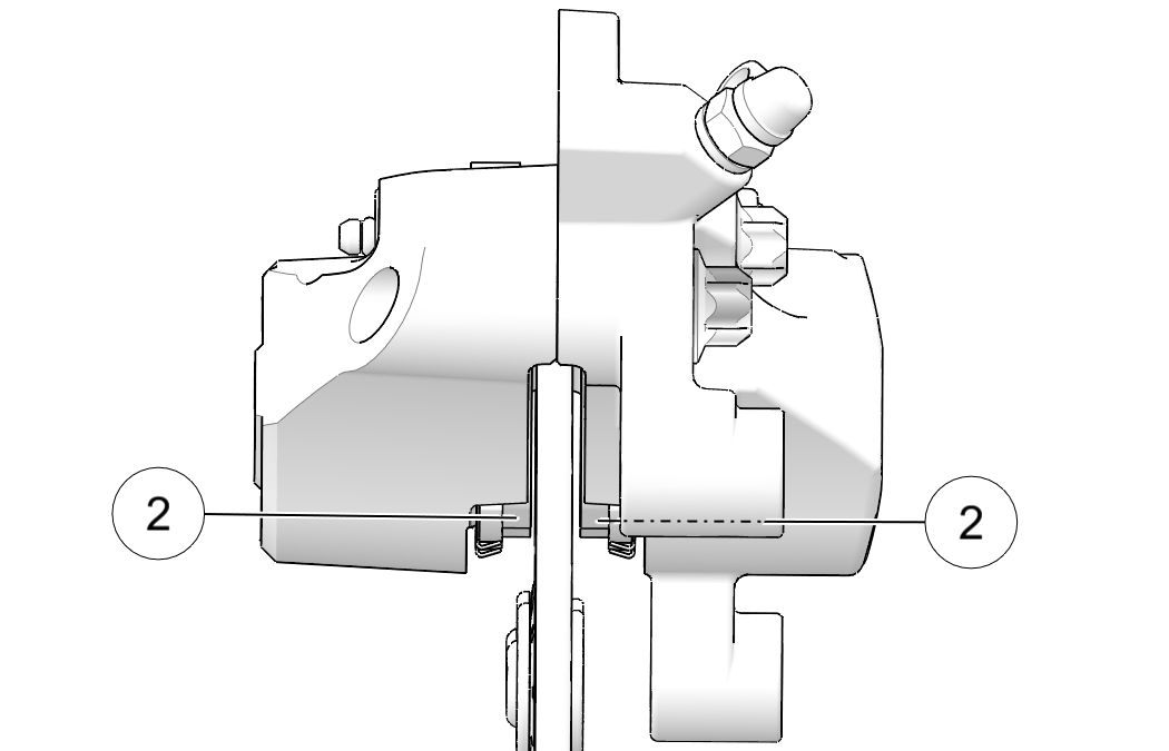 Inspect each front brake pad on both sides of the front disc. Inspect each rear brake pad on both sides of the rear disc. Replace brake pads when the thinnest point of the friction material 2 has worn to 1.0 mm. Please see your dealer for this service.