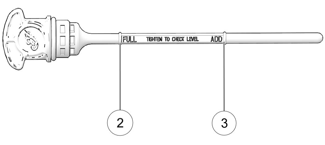 TIPThe approximate volume between the FULL 2 and ADD 3 marks on the dipstick is 32 oz. (.94 L).