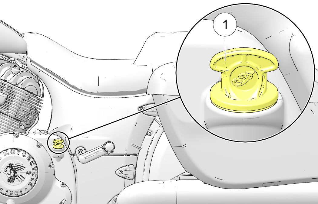 Always check the oil after running a cold engine at idle for 30 seconds. The oil fill/dipstick is located on the left side of the motorcycle. Always use the recommended oil. See Engine Oil Recommendation.