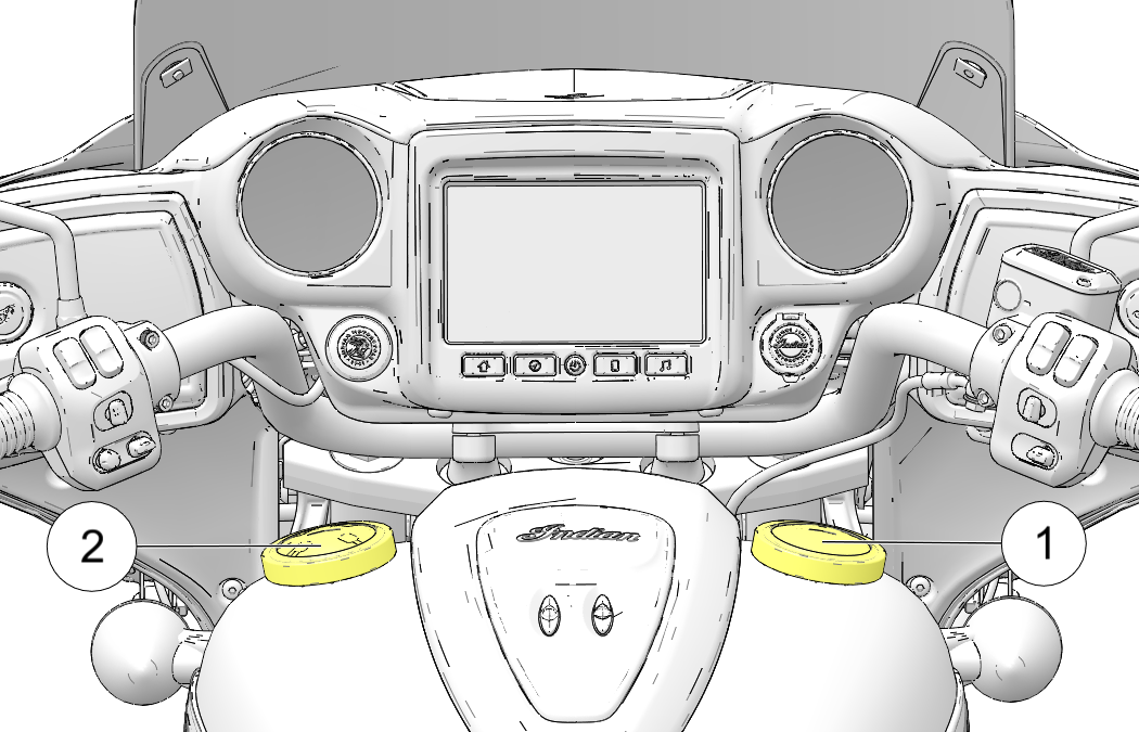 The fuel filler cap 1 is located on the right side of the console. An ornamental cap 2 is located on the left side of the console. Do not attempt to remove the ornamental cap.