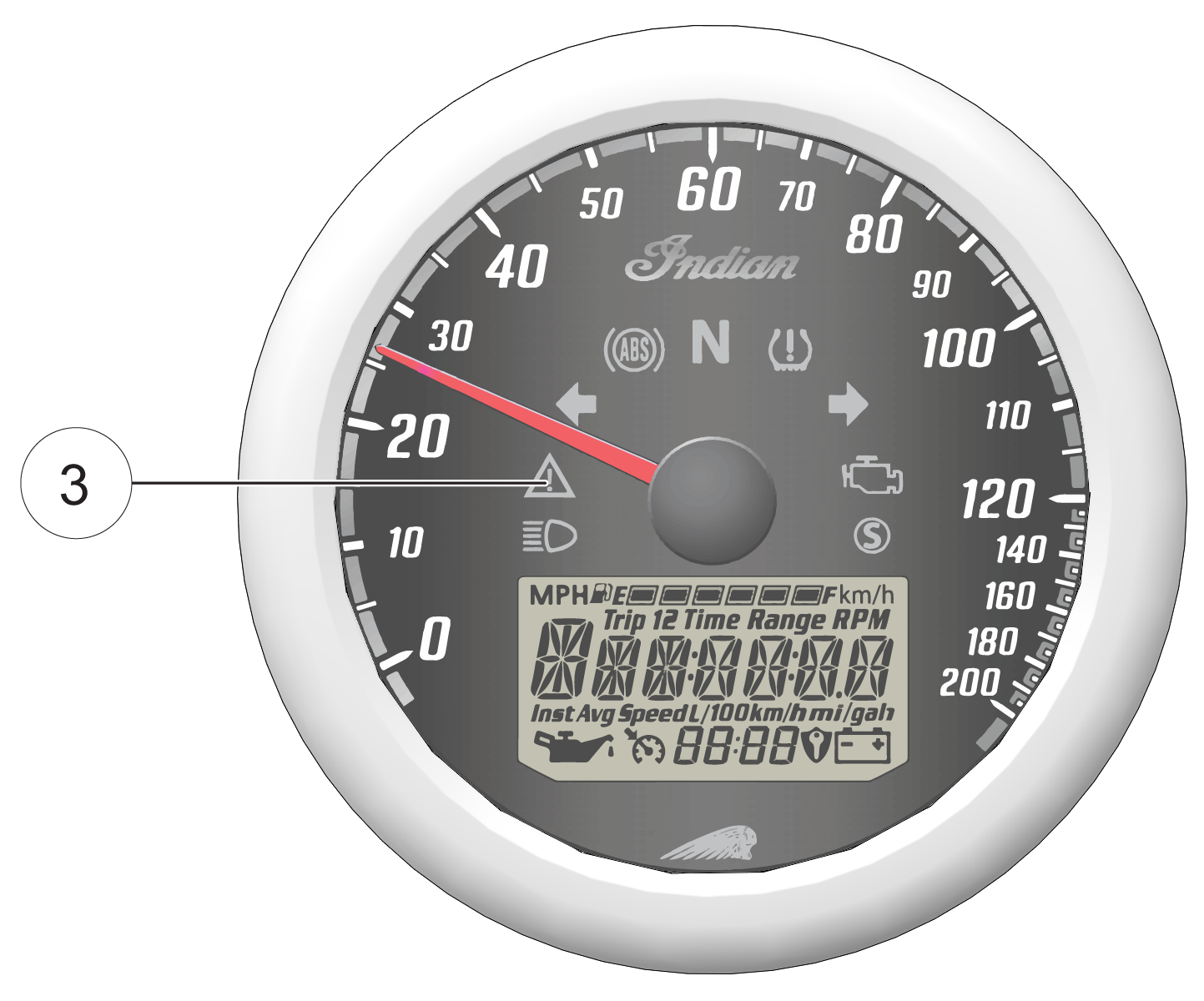 For motorcycles equipped with an instrument cluster (Cruisers), a flashing amber warning light indicator signals the start of the countdown timer 3. After the time has elapsed and the engine is shut off, the illuminated indicator will remain solid. The engine can be re-started by pressing the starter switch. After starting the engine, the Check Engine indicator should no longer be illuminated.