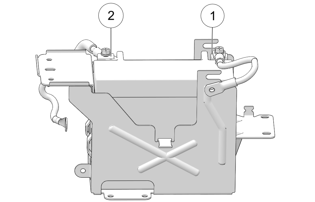 Remove the negative (-) battery cable 1 from the battery terminal. Position the cable well clear of the terminal.