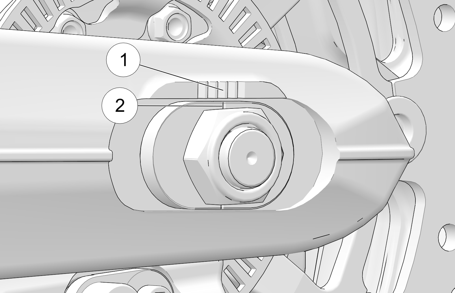 Marks 1 and 2 are used as a reference for initial wheel alignment. Marks should be in roughly the same position on both left and right sides of wheel.