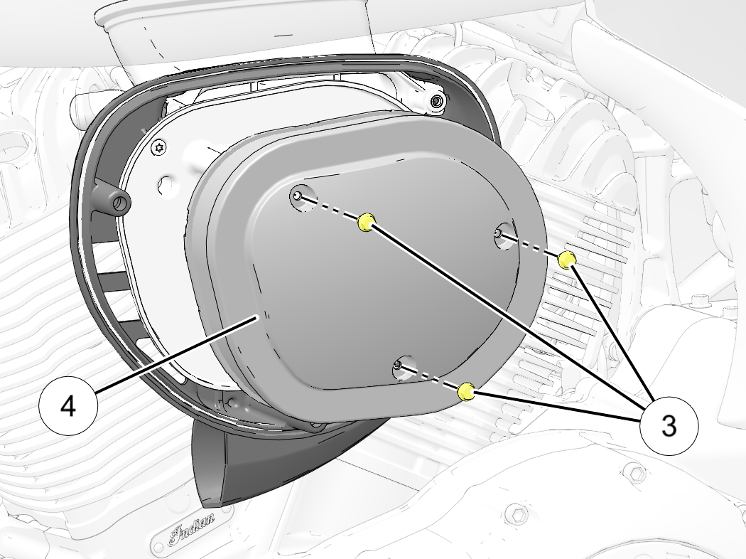 Remove the three air filter screws 3 and remove the air filter assembly.