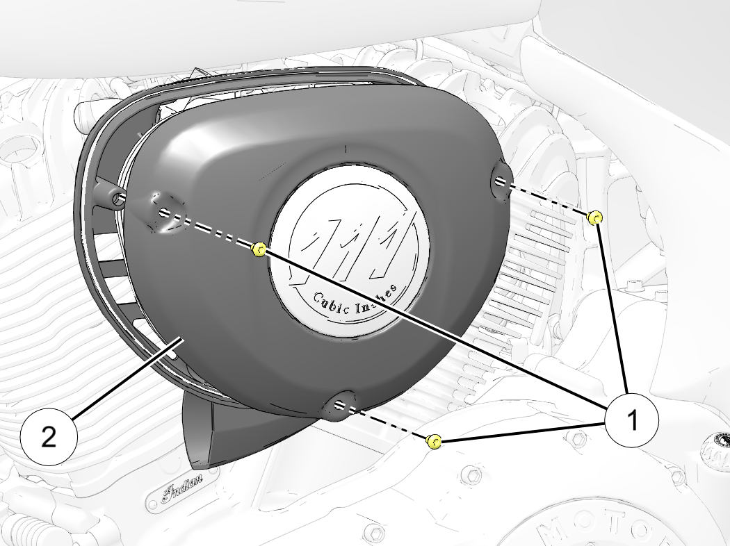 Remove the air box cover screws 1 ,and remove the cover 2.