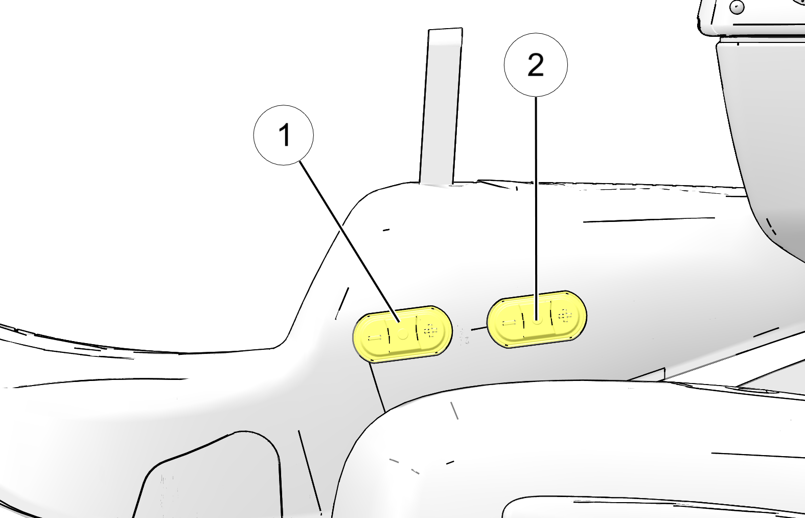 Use the seat switches located on the lower left edge of the seat to adjust heating and cooling settings. The front switch 1 controls the settings for the driver seat, and the rear switch 2 (if equipped) controls the passenger seat setting.