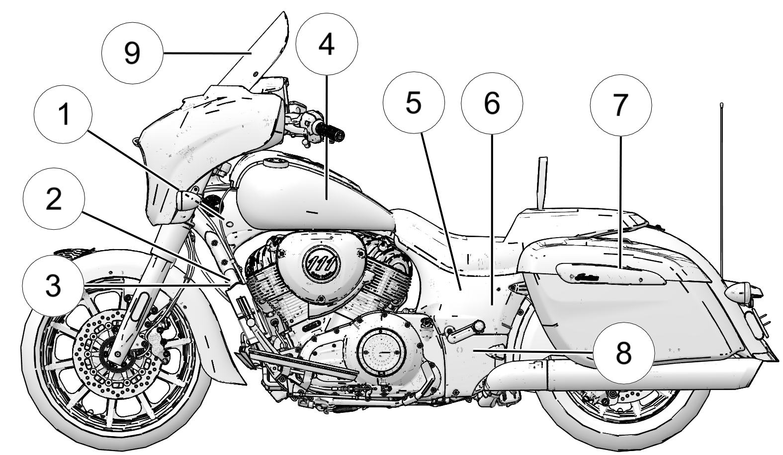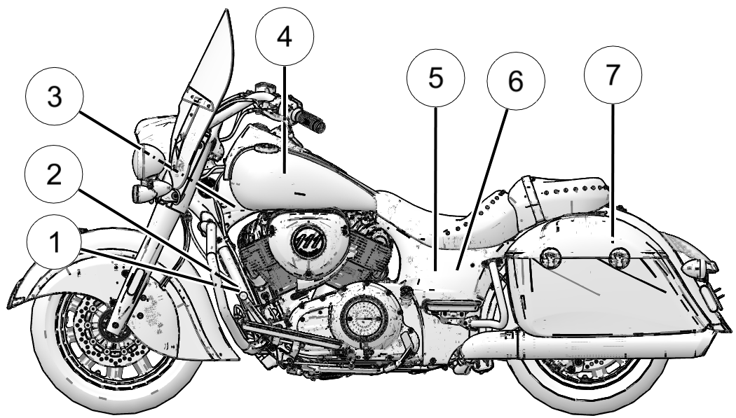 1 Vehicle Identification Number (VIN) (side of steering head)