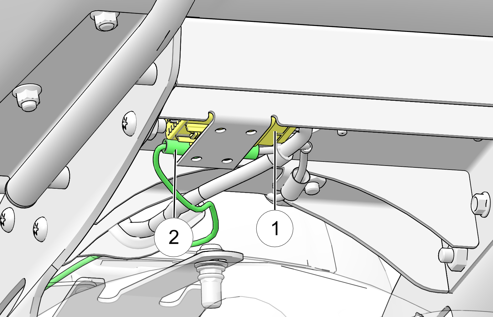 Locate the seat mount brackets under the edge of the driver’s seat. There are two seat mount brackets, one on each side of the vehicle. Remove both seat mount bolts 3.
