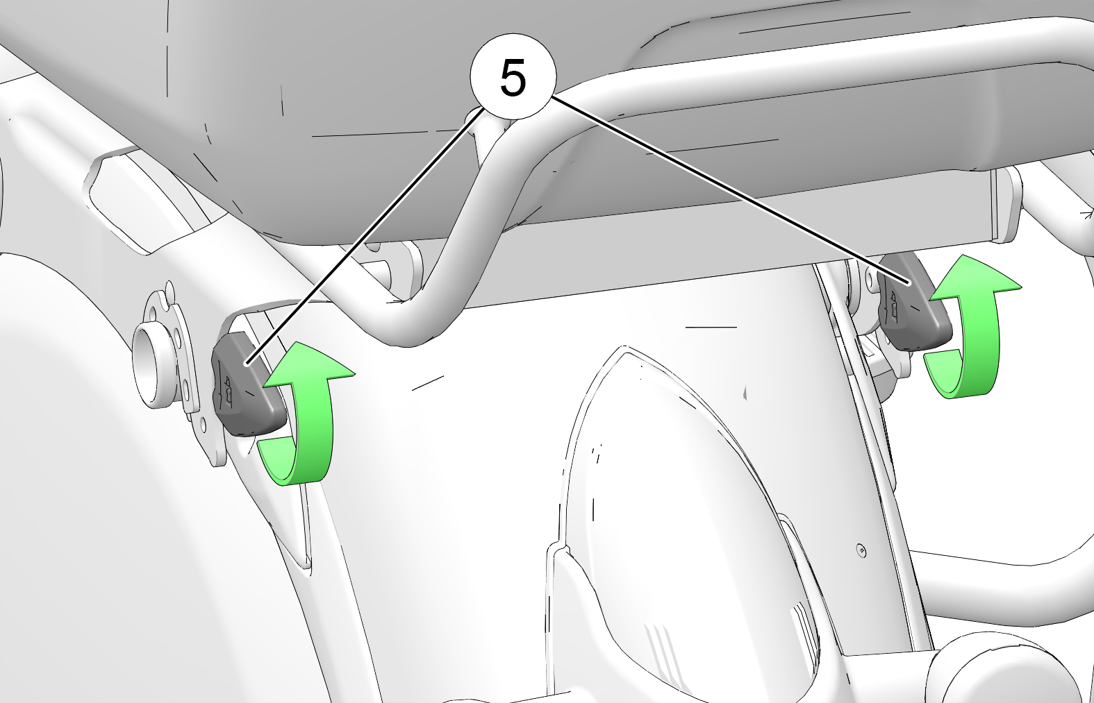 Lift the trunk latches 5 to unlock the trunk from the mount.