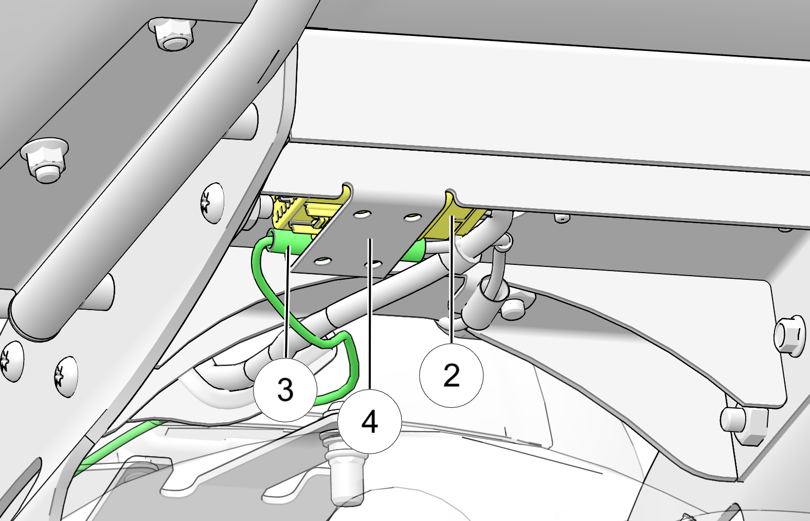 NOTEThe trunk harness multi-plug is located above the metal mounting plate 4. -
