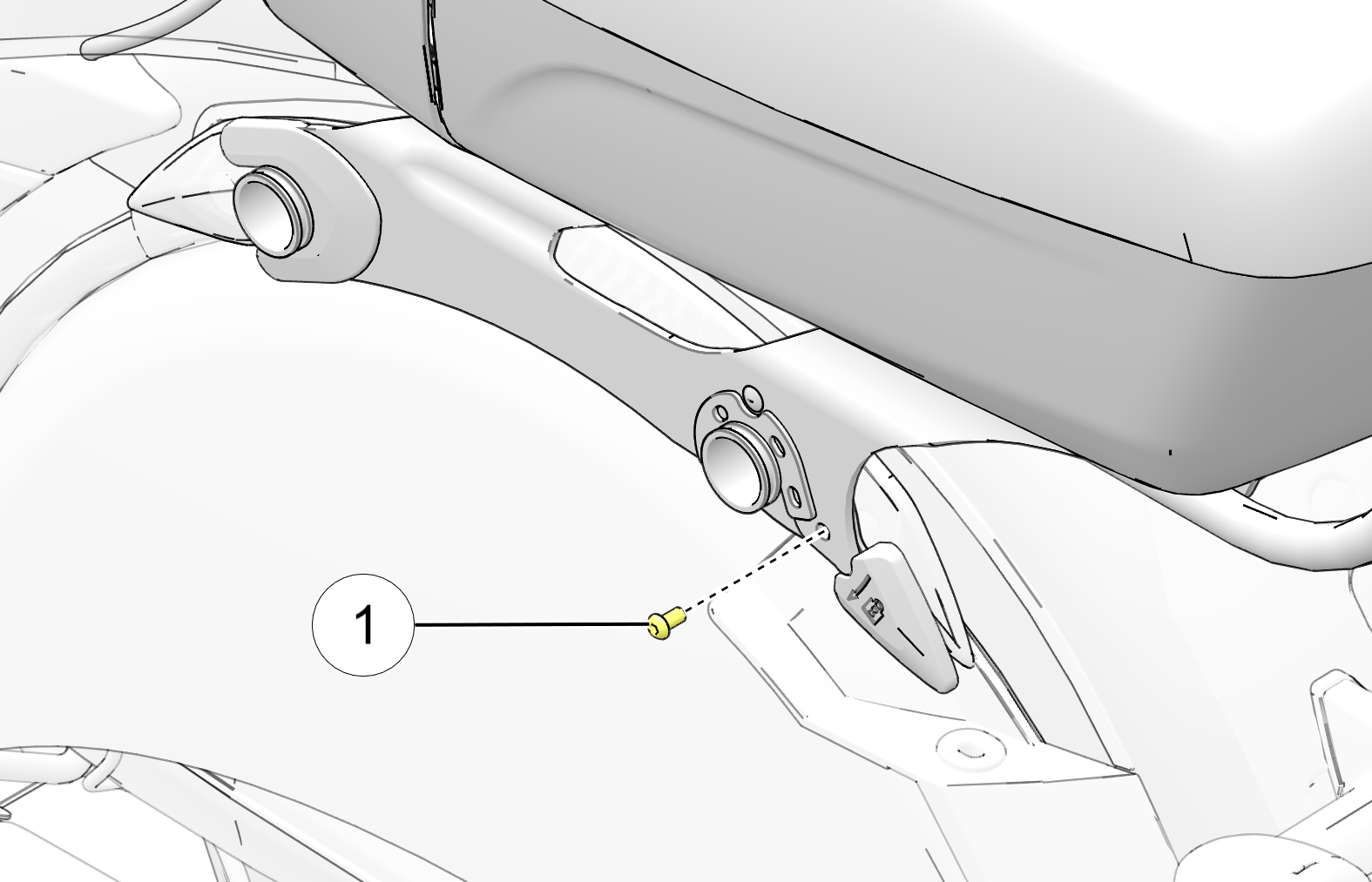 If applicable, remove the left and right saddlebags and remove the trunk lock fastener 1 from each trunk latch.
