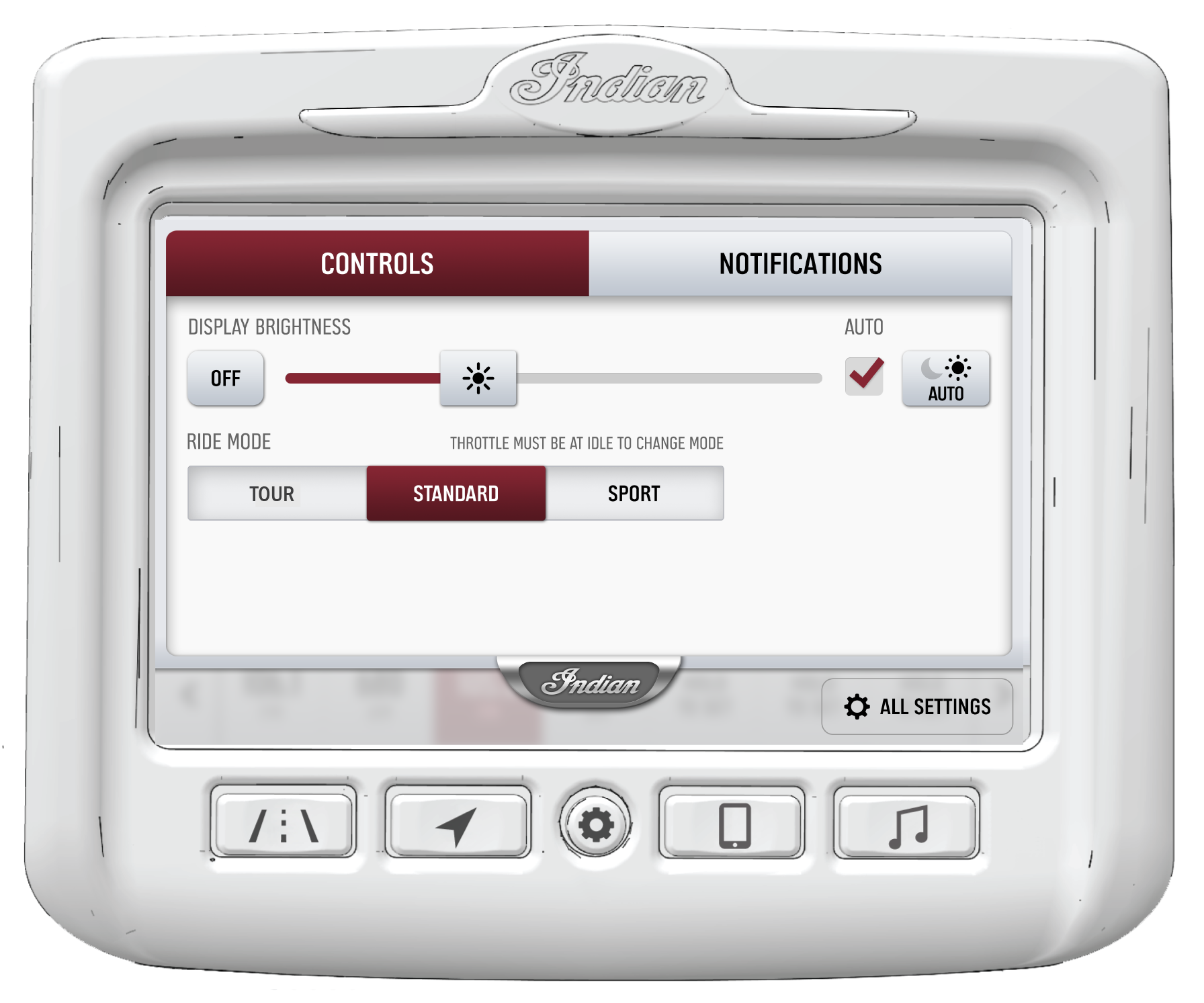 the gear button on the gauge, or by tapping the INDIAN MOTORCYCLE