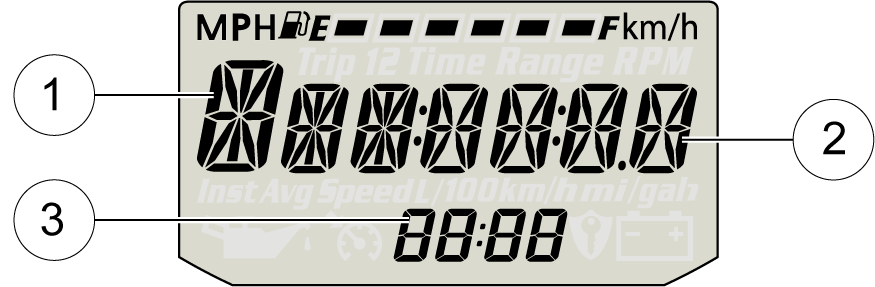 Record the three numbers displayed in the gear position, clock and odometer displays.