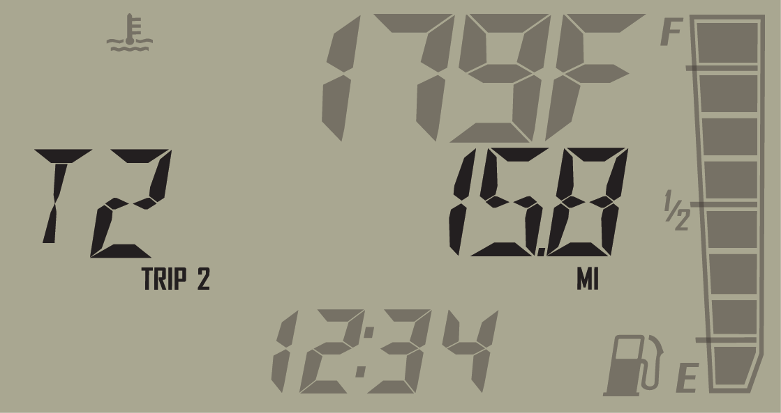 Press either toggle button to cycle to the desired trip meter option (T1 or T2).