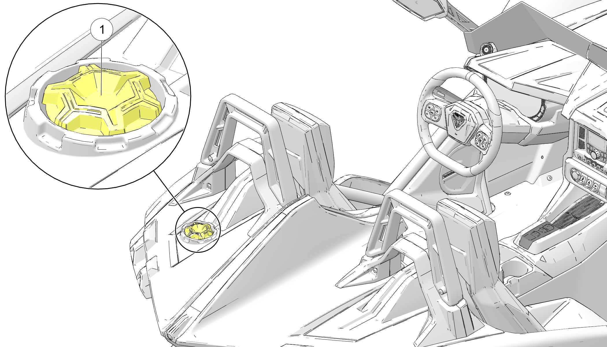 The fuel tank filler cap 1 is located on the left side of the vehicle, behind the driver’s seat.