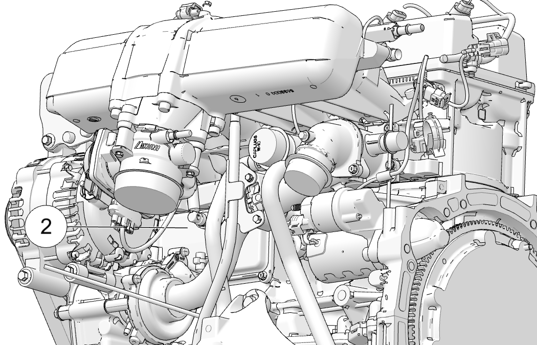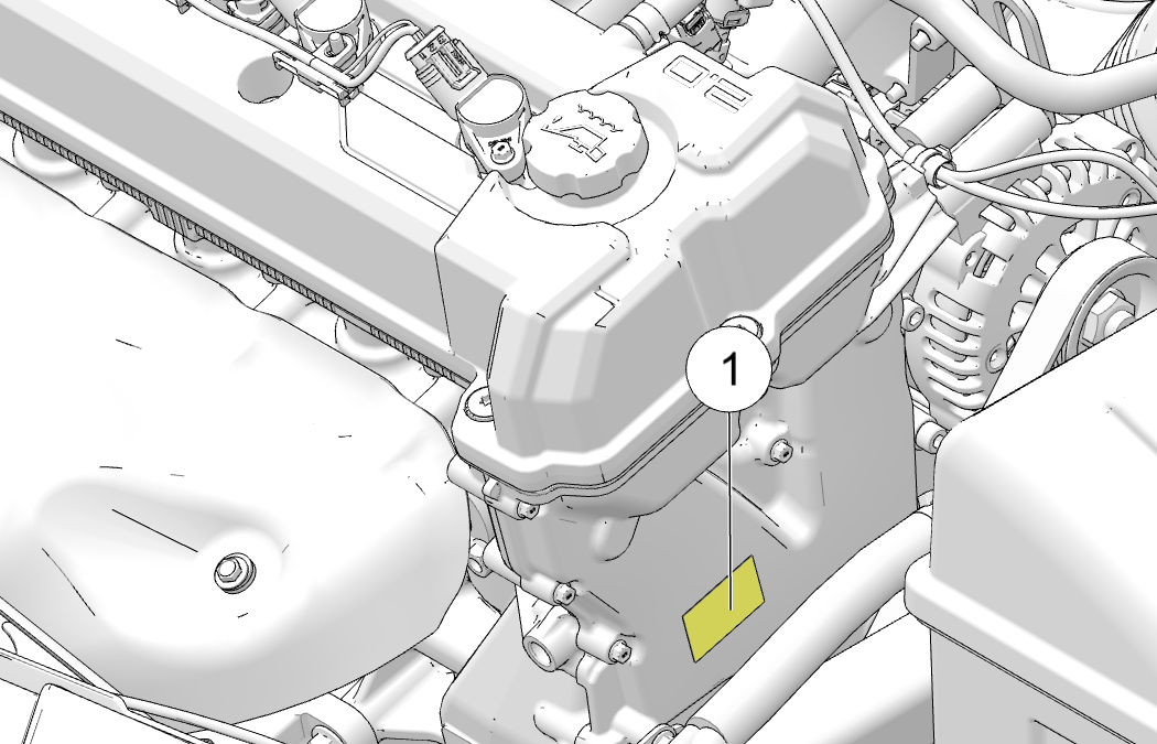 The engine identification number 1 is printed on the front camshaft drive cover. The number is also pin stamped on the engine block adjacent to the alternator and water pump housing 2. Record the number in the space provided in the Identification Numbers Record section.
