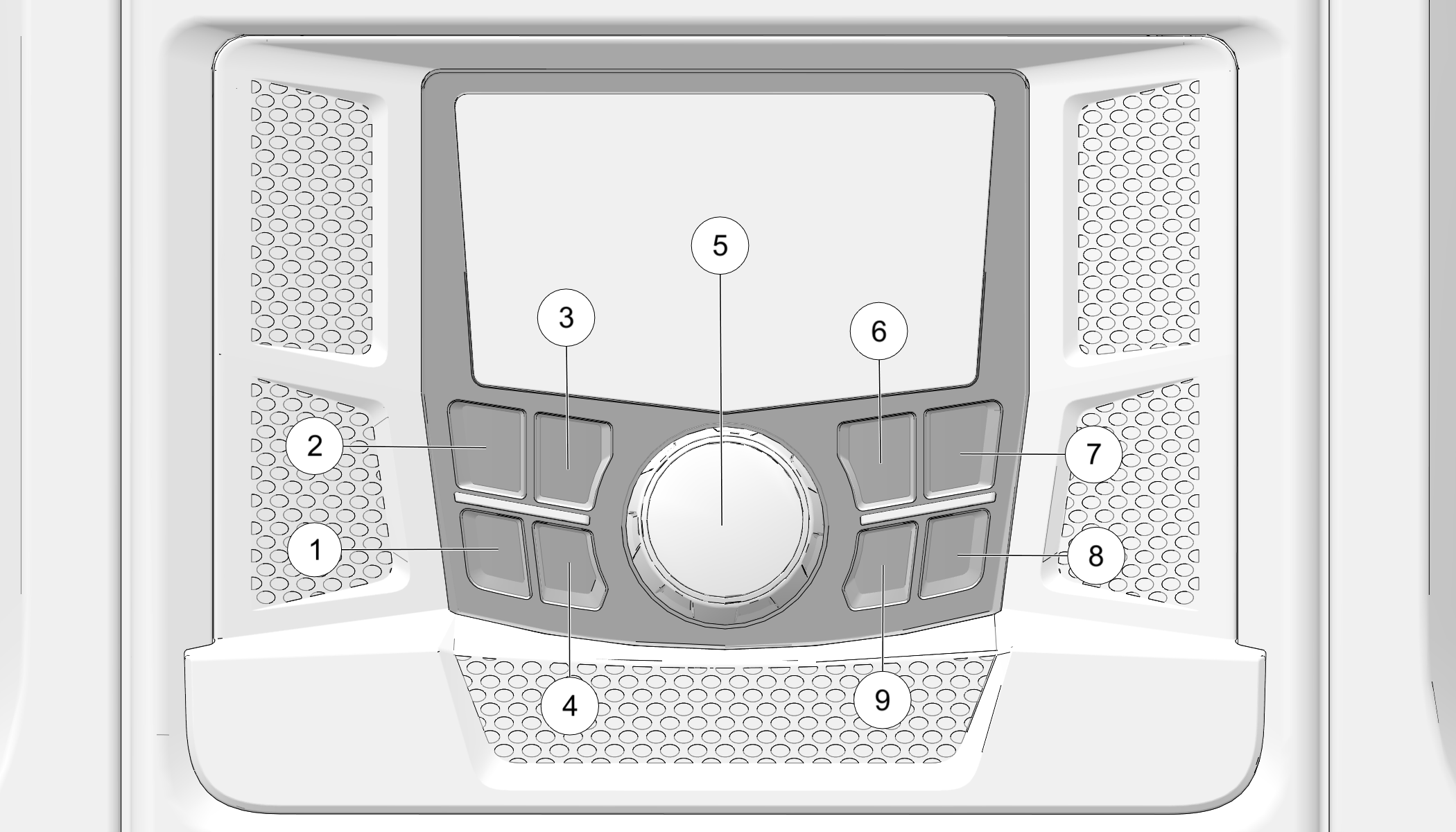 | Rotary Encoder | Adjust the main volume, zone volumes, and setting adjustments. Also, used to navigate menus and make selections using a short press. |