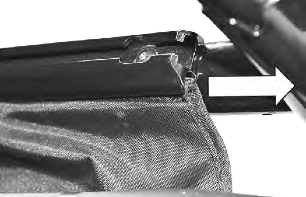 5. Slide semi-rigid front edge of top out of the mounting channel at front of frame assembly. |