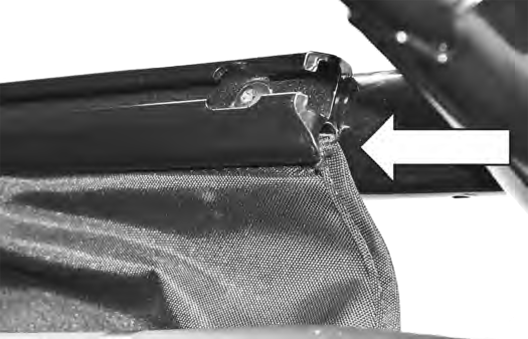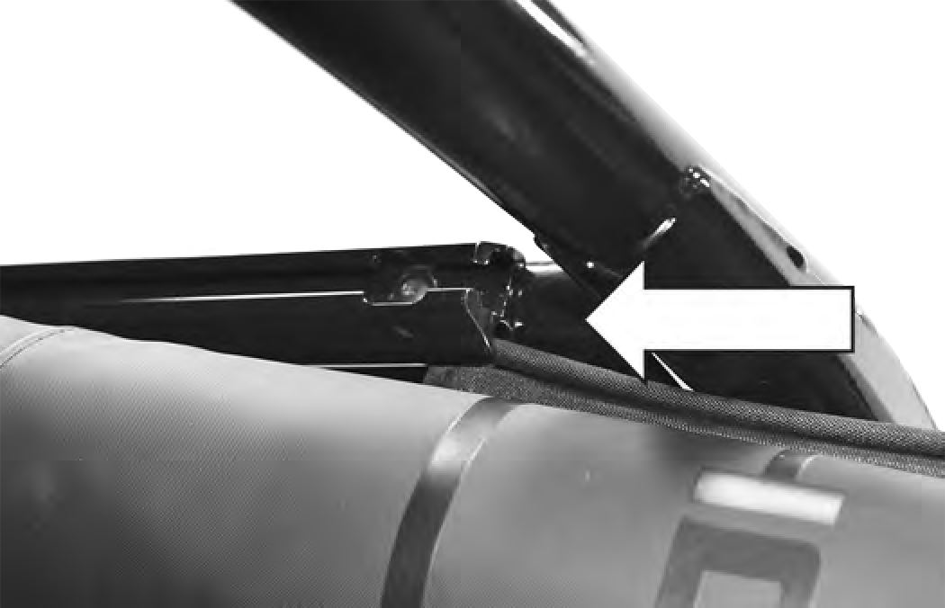 2. Insert semi-rigid front edge of top into the channel at the front of the frame assembly. |