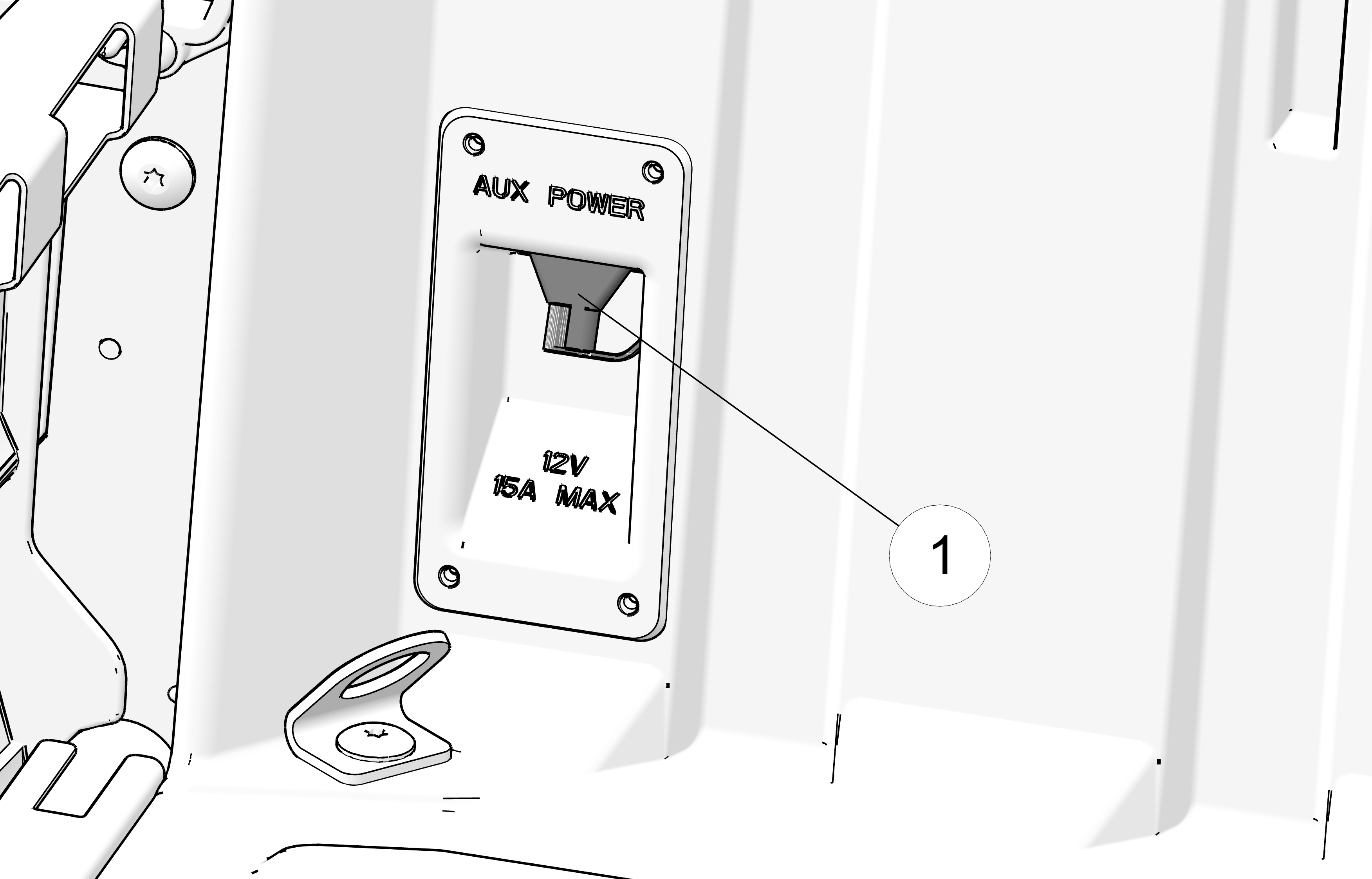 The AUX switch activates power to the rear auxiliary 12V-15A SAE plug. The rear plug is not active/live until the AUX switch is in the ON position.