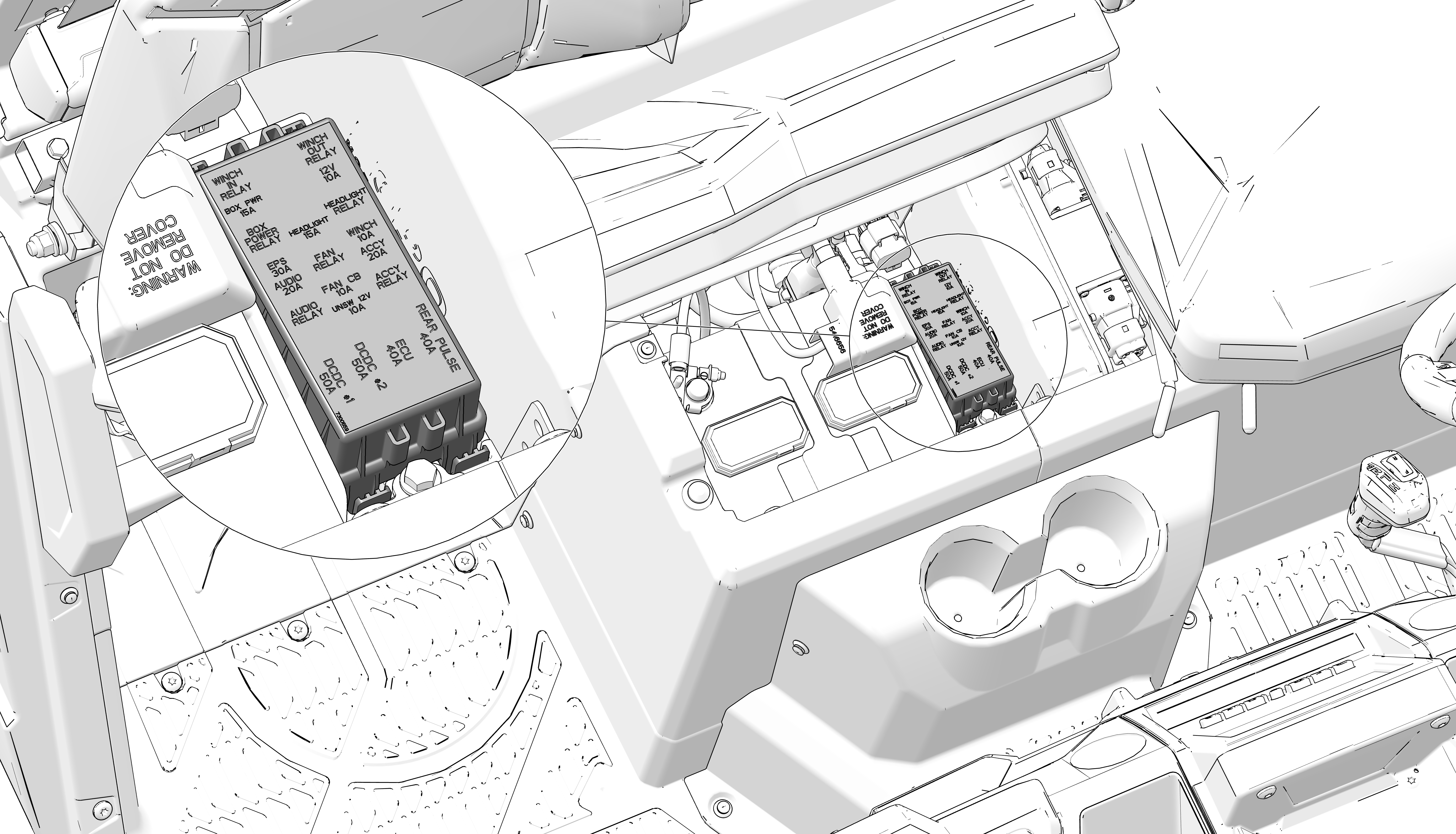 If the motor stops or will not start, or if you experience other electrical failures, a fuse may need replacement. Locate and correct any short circuits that may have caused the blown fuse, then replace the fuse. To access the fuse box, lift the passenger-side seat up and remove the storage bin under the seat. Spare fuses are provided in the fuse box. If you suspect that a fuse or relay may not be working properly, your dealer can assist.