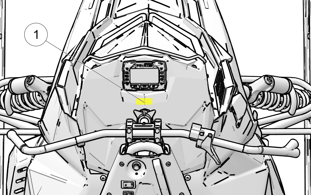 The No Passenger Warning label 1 is located on the dash below the instrument cluster.