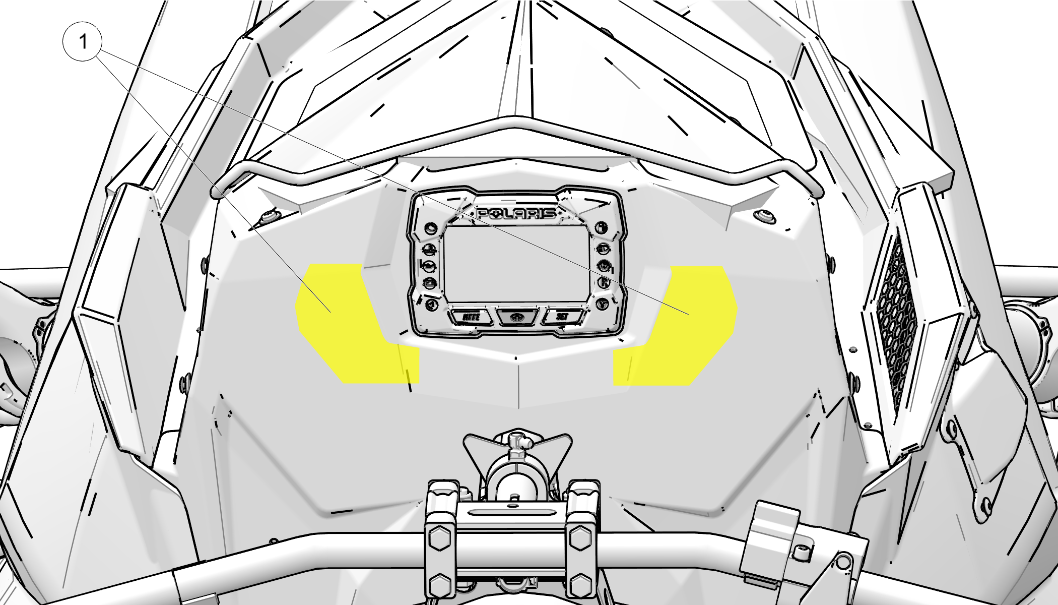 The Operation Warning label is located on either side of the dash.