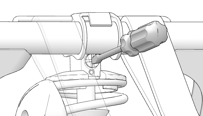 Increase the rebound damping force by turning the adjuster clockwise to increase the stiffness. Decrease the rebound damping force by turning the adjuster counter-clockwise to increase the softness. The maximum adjustment for this adjuster is the fully turned in position. The minimum adjustment is 16 clicks out from the maximum position.