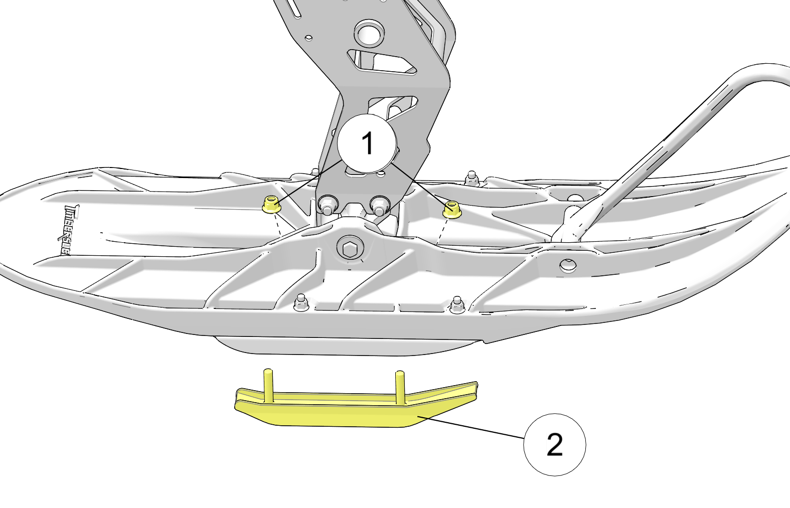 Remove the attaching nuts 1 and pry the skag 2 downward.