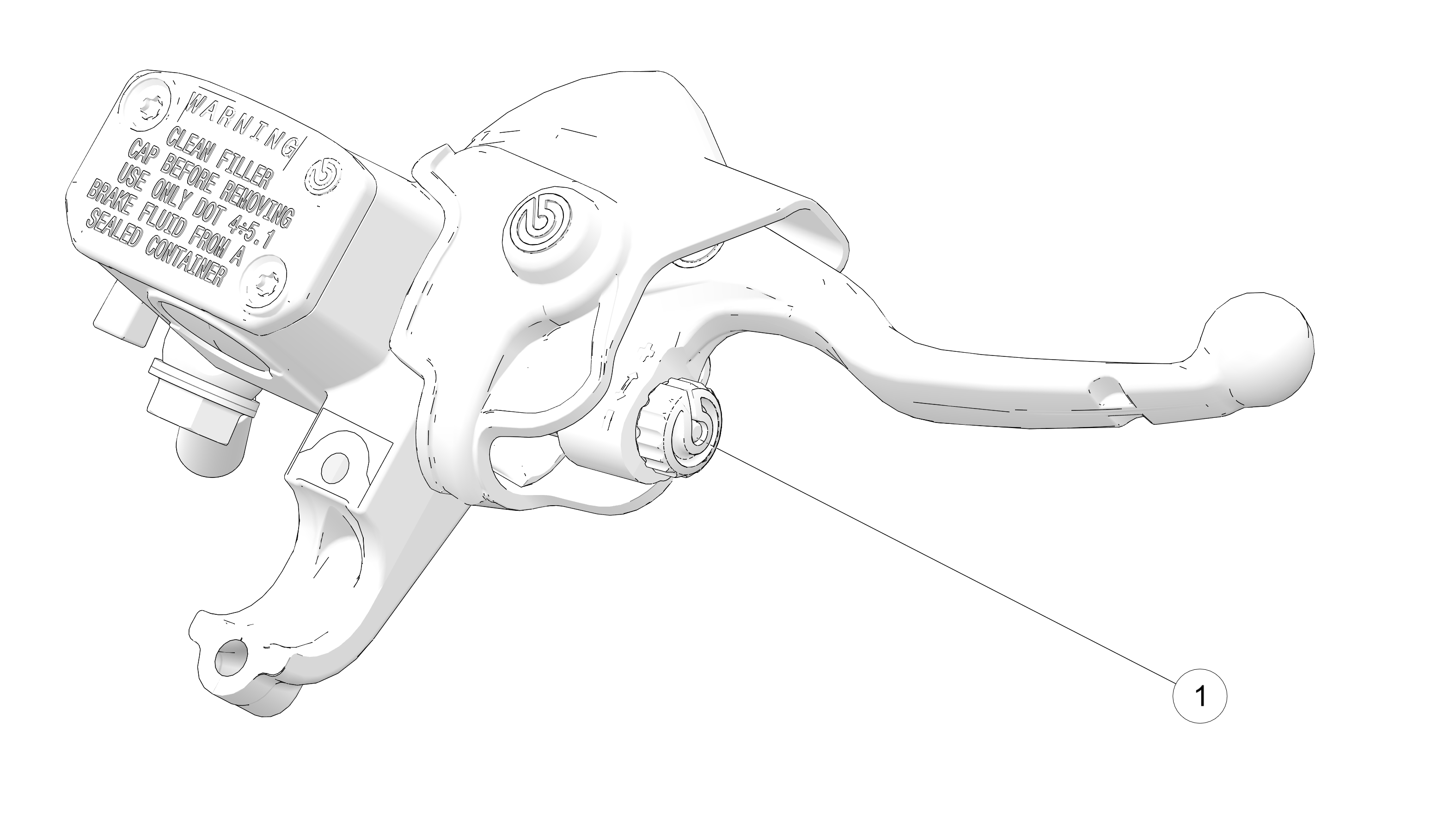 Locate the adjustment knob 1 on the Brembo® brake assembly.