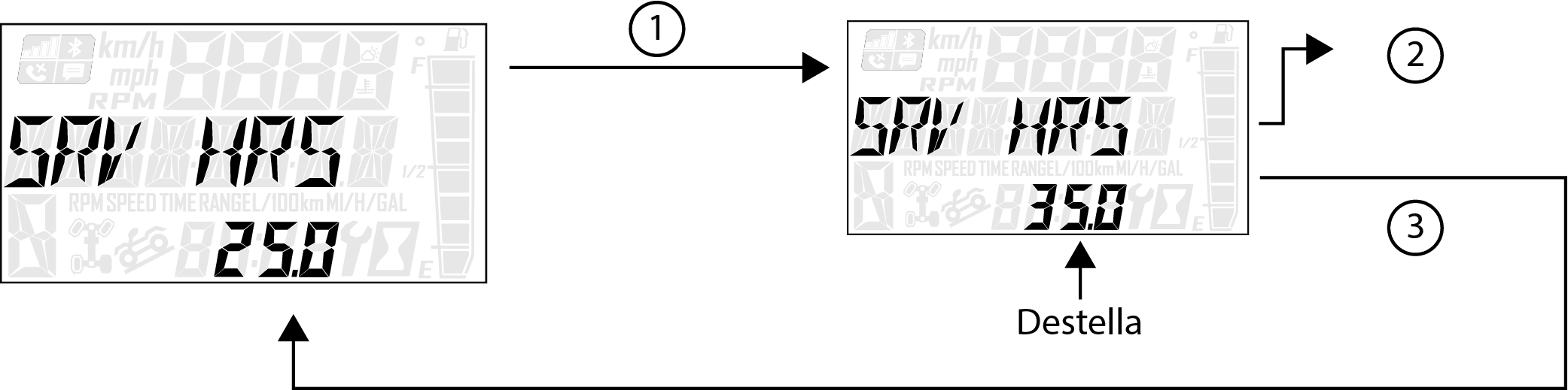 Seleccione “Service Hours” (horas de servicio) del menú de Opciones presionando el botón MODO.