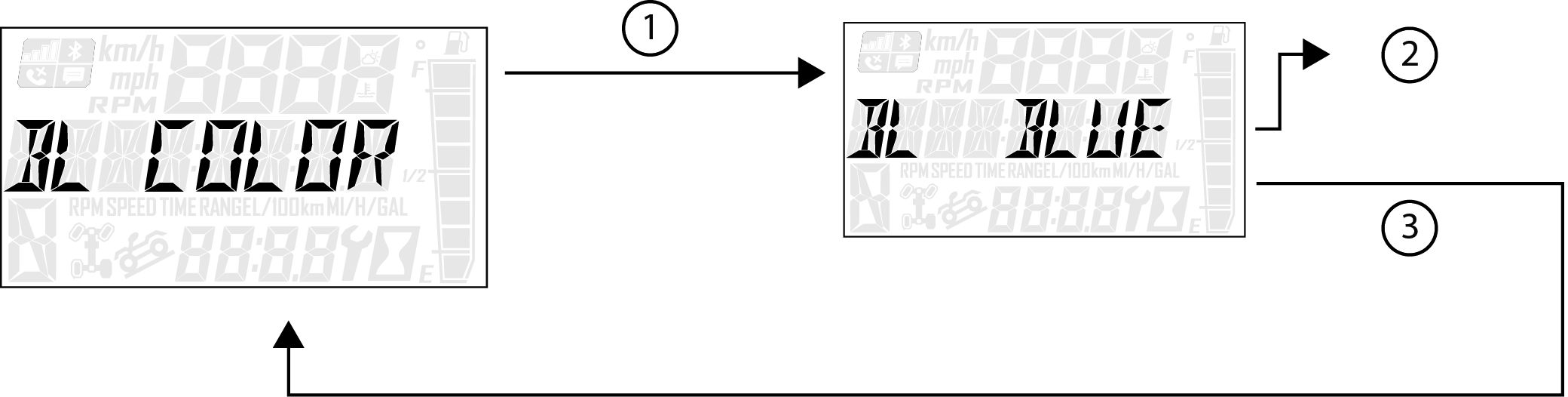 2. Sélectionner « Backlight Color » (couleur de rétroéclairage) à partir du menu d’options en appuyant sur le bouton MODE.