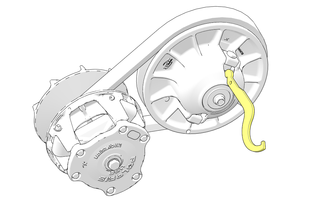 Libérer les demi-poulies et tourner l’embrayage à poulie menée dans le sens antihoraire pour s’assurer que les demi-poulies se ferment contre la courroie.