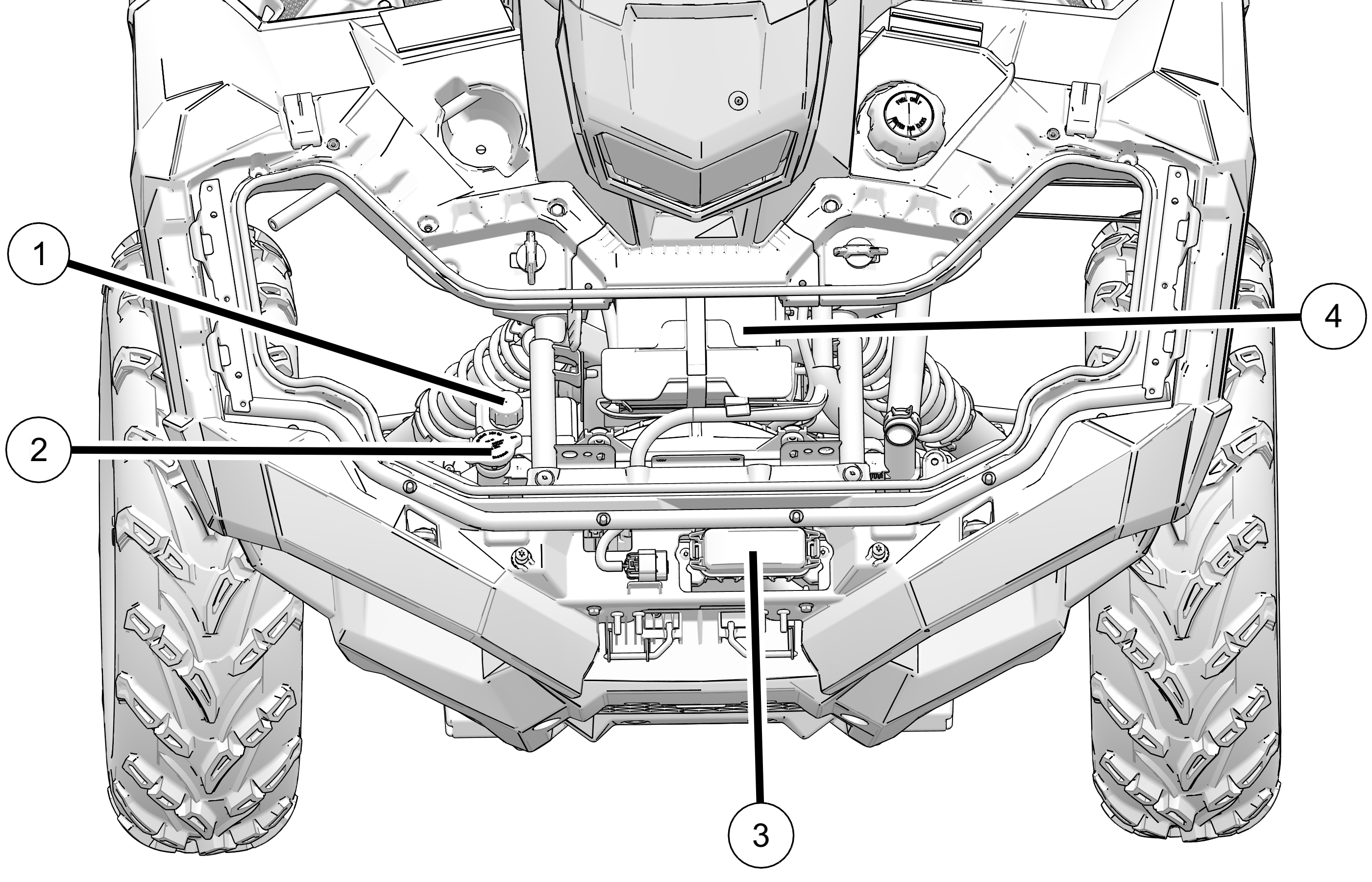 | 1 Bouchon du réservoir de liquide de refroidissement | 3 Composants électriques/fusibles/relais |