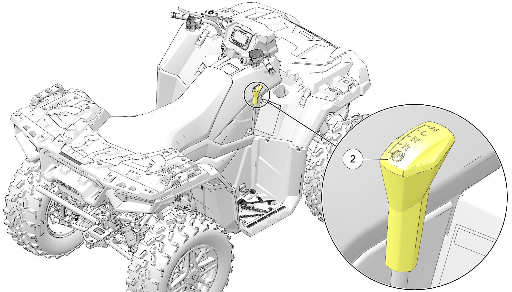 Le sélecteur de vitesse de la boîte de vitesses 2 se trouve du côté droit du véhicule.