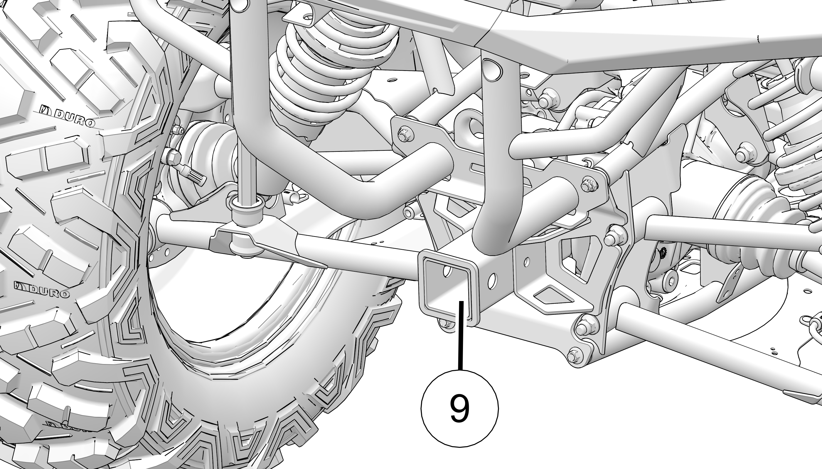 The Hitch Capacity label 9 is located on the hitch bracket.