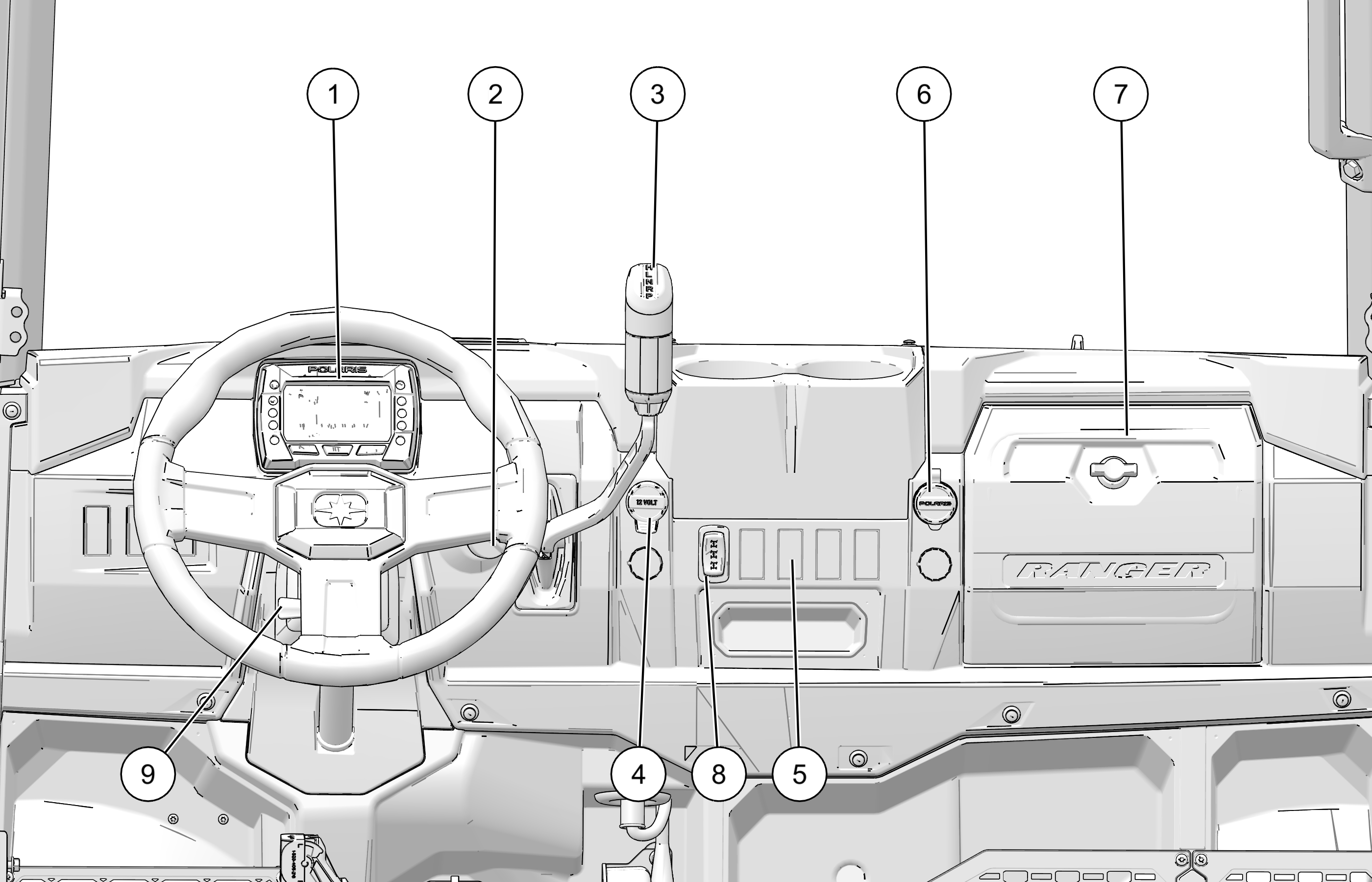 | 3 Gear Selector (Shifter) | 8 AWD Switch | |