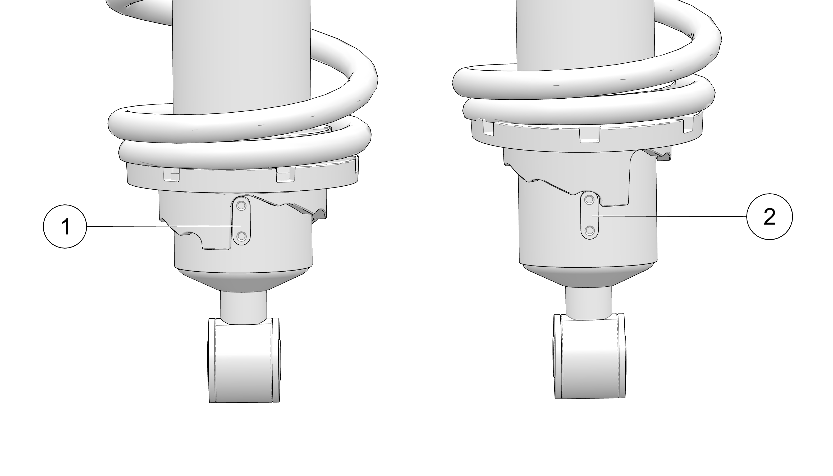 Remove the top shock mounting bolt from the inside mounting position 1.
