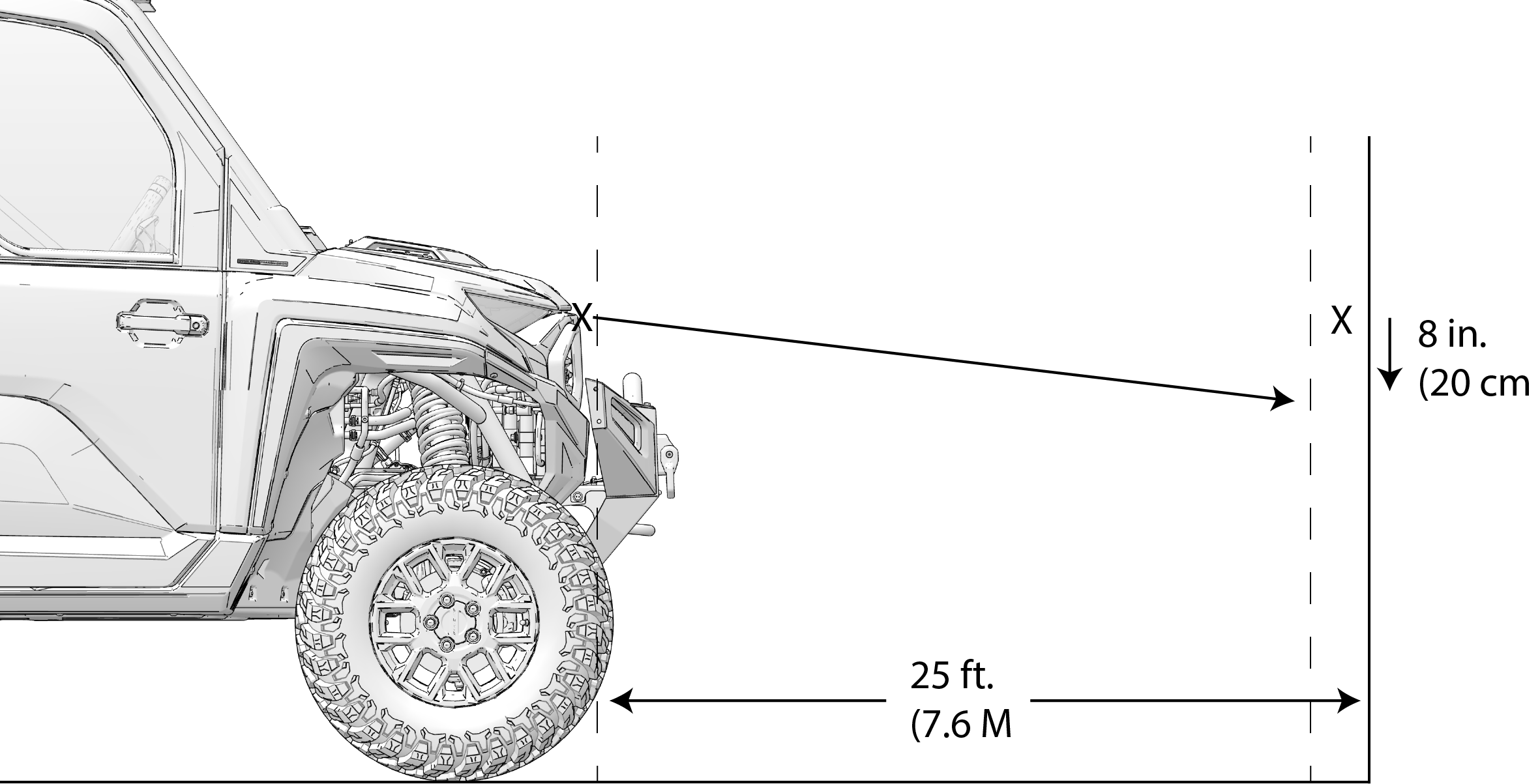 Place the vehicle on a level surface with the headlight approximately 25 ft. (7.6 m) from a dark wall.