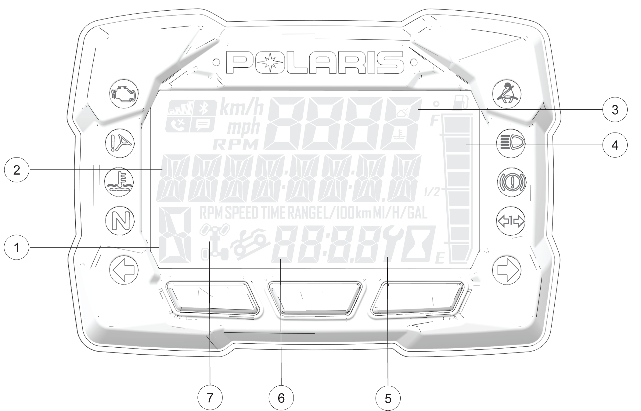 | 5 Service Indicator | A flashing wrench symbol alerts the operator that the preset service interval has been reached. Your POLARIS dealer can provide scheduled maintenance. |